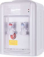 Для квартиры, частного дома, небольшой фирмы с лимитированным потреблением воды оптимальный вариант – это кулер, установленный на столе, подставке, полке. Он эргономично впишется в ограниченное пространство, но только не в подоконник окна. На нем качество воды в бутиле ухудшается под воздействием солнечного излучения. Настольный кулер с тремя кранами удобно использовать при наполнении больших емкостей (кастрюль) водой естественной температуры.