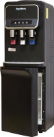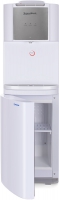 Напольное устройство характеризуется невысокой эффективностью (0,5-0,7 литров за час) и электронным охлаждением (температура воды доводится до +15°С). Или же это компрессорное остужение (минимальные температуры 5°-10°С) со скоростью остывания воды 2-4,5 л/час. Такой расход приходится на офисы.